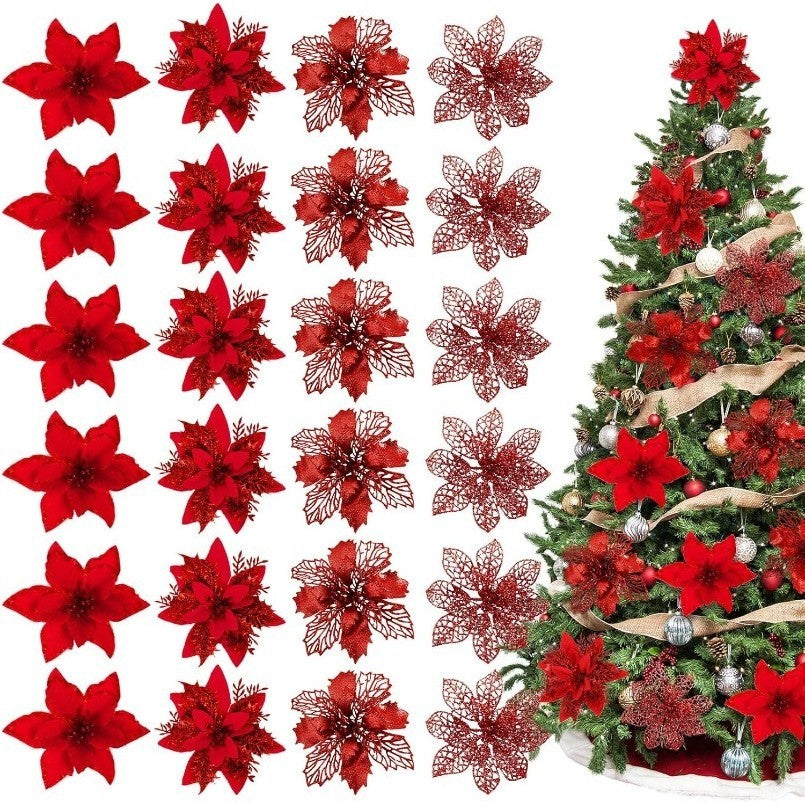 Dê um toque elegante e festivo à sua decoração natalina com este conjunto de flores decorativas com clipe. Feitas em plástico leve e durável, são ideais para decorar árvores de Natal, guirlandas, arranjos, festas ou até projetos DIY. Disponíveis em cores vibrantes para combinar com qualquer estilo.